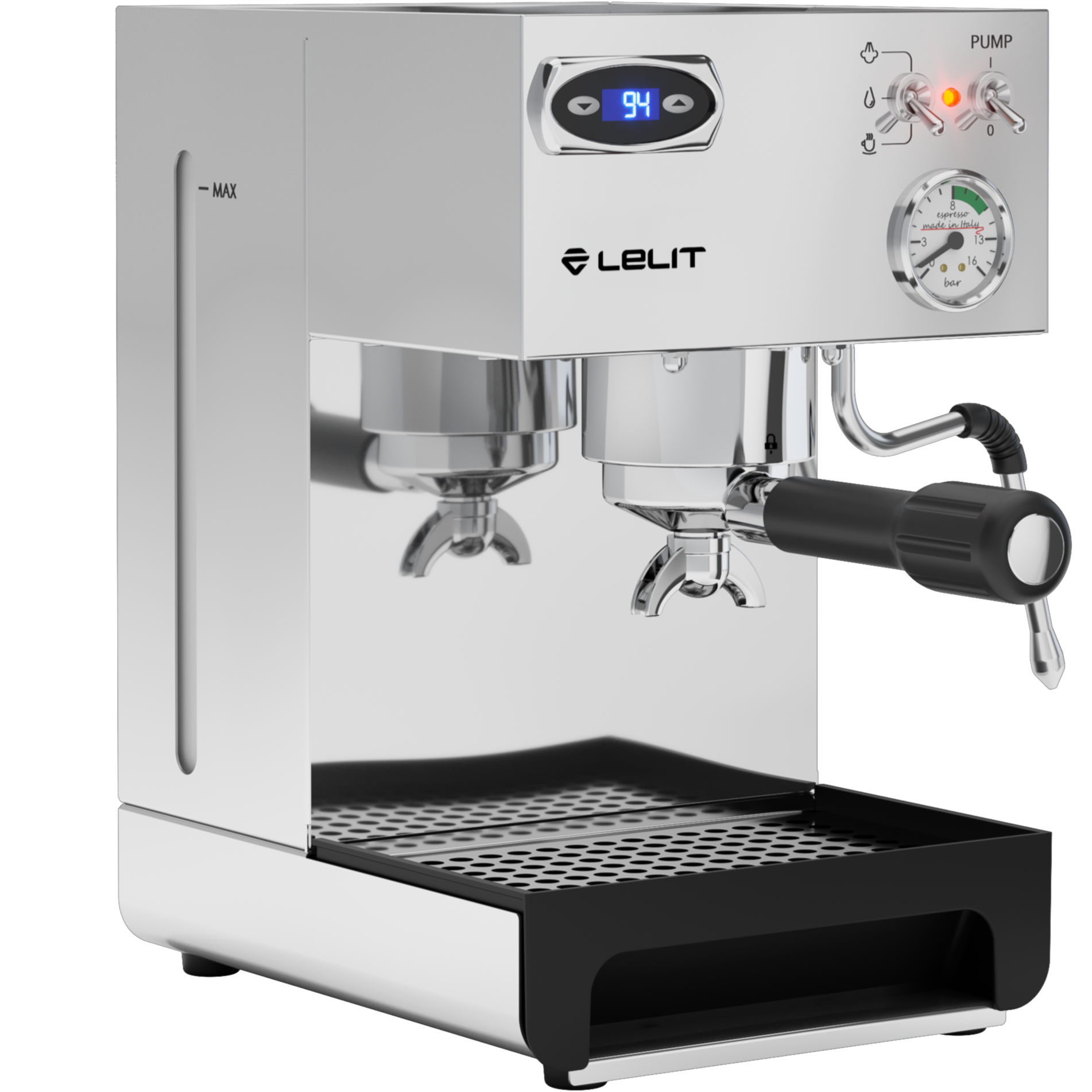 Portafiltro 2 vie con manico classico LELIT57 / Filtro 1 dose LELIT57 (7-9 g) / Filtro 2 dosi LELIT57 (14-18 g) / Filtro cialde carta LELIT57 / Pressacaffè / Cucchiaio per caffè macinato